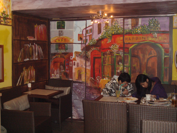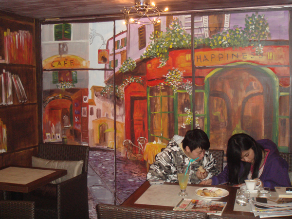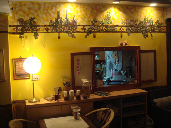 話說去年某天,和客人在聊天時講到,或許在一個季節接替的時候,可以來為原來店裡的風貌做一點兒的改變!言猶在耳,幸福親輕食的內部真的改變了~我覺得真的好崇拜陳大哥,怎麼可以,怎麼可能,就醬子一筆一劃的,就成就了一牆子的浪漫面貌,他真的好利害,真的~