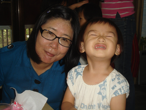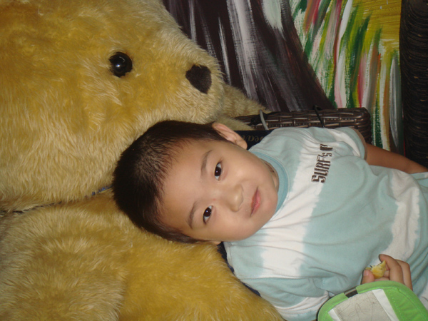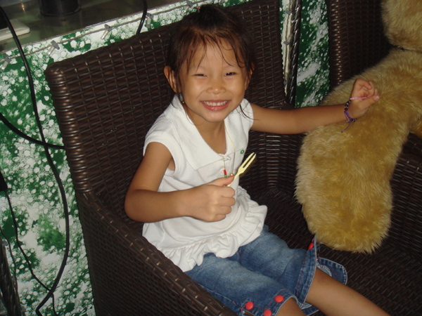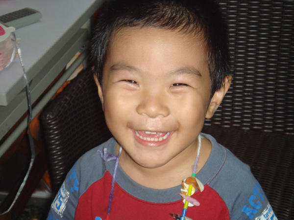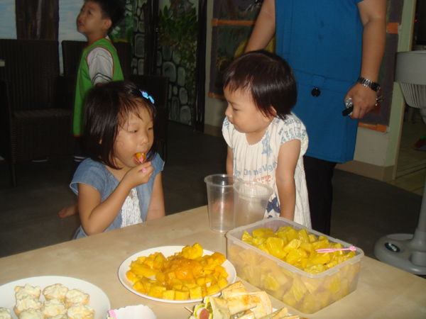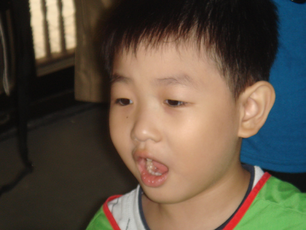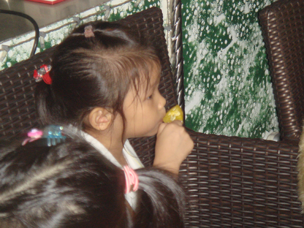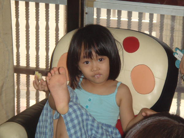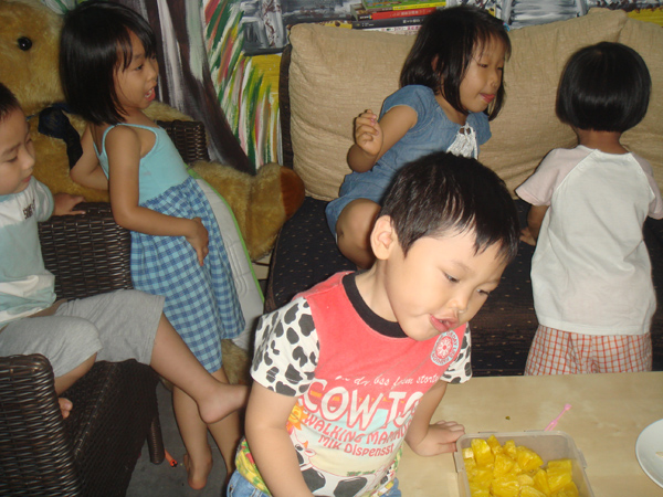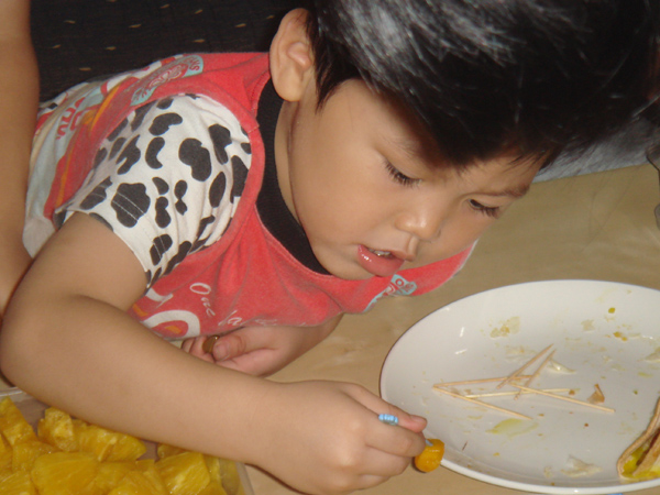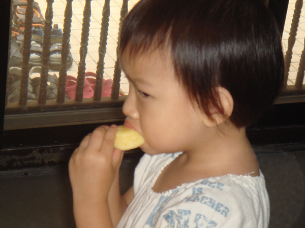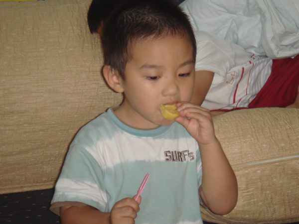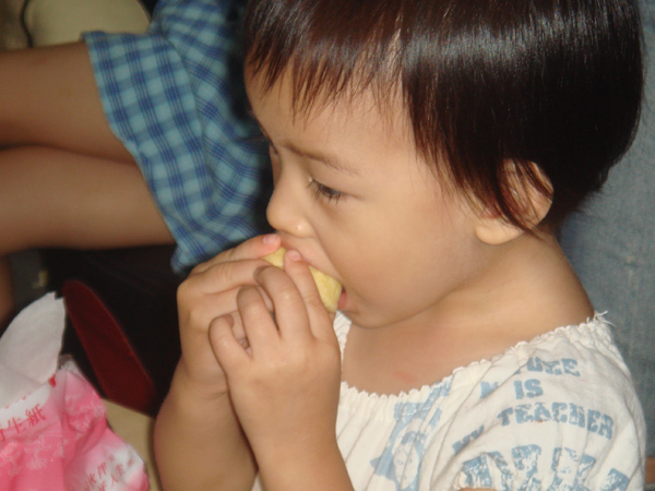 只有一個小朋友 周秉恒 自己一人在外面就吃了起來